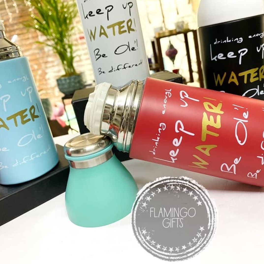 حافظات مياه ملونة (أحمر- أخضر- أصفر- بنفسجي- أزرق) بأشكال مختلفة مع غطاء سيليكون شفاف