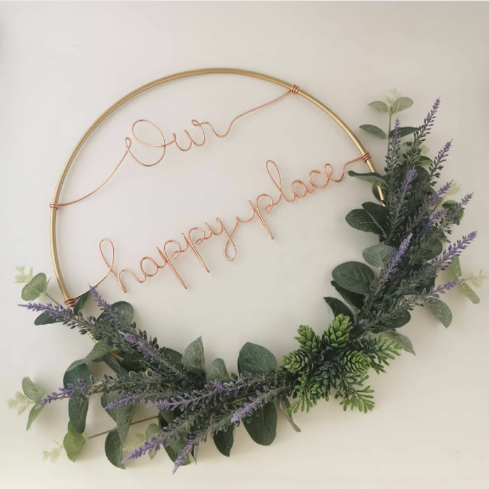 Customised door hanger decorated with artificial eucalyptus and lavender. Diameter: 30 cm For: 198000 sp