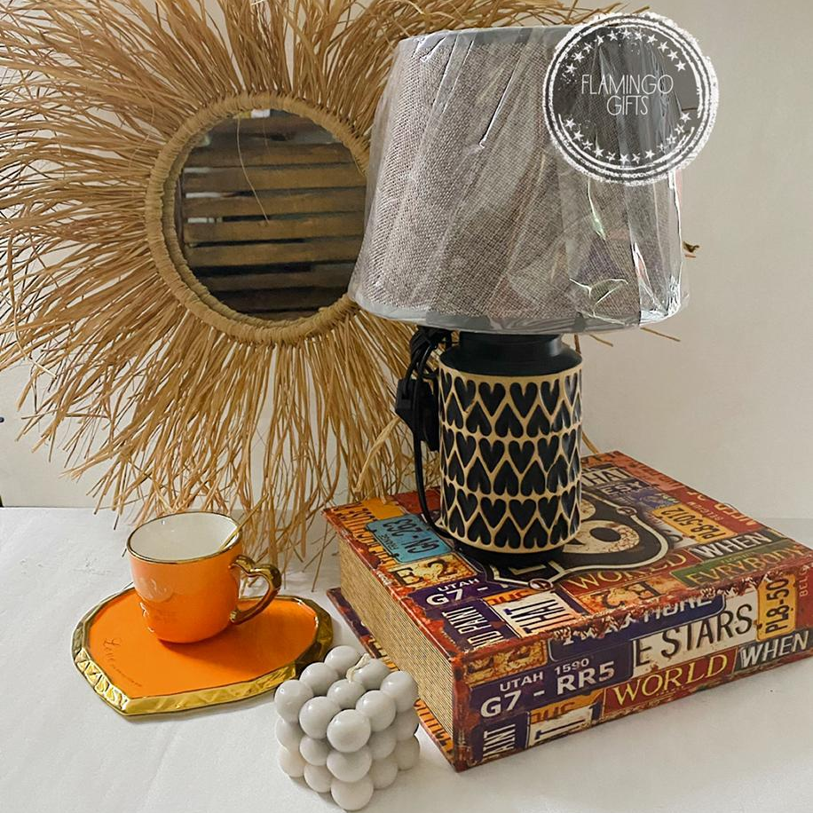 -لمبدير قاعدة سادة بلونين متدرجين تتناسب مع لون الغطاء -لمبدير قاعدة مزخرفة بالذهبي مع غطاء للضوء لون أبيض